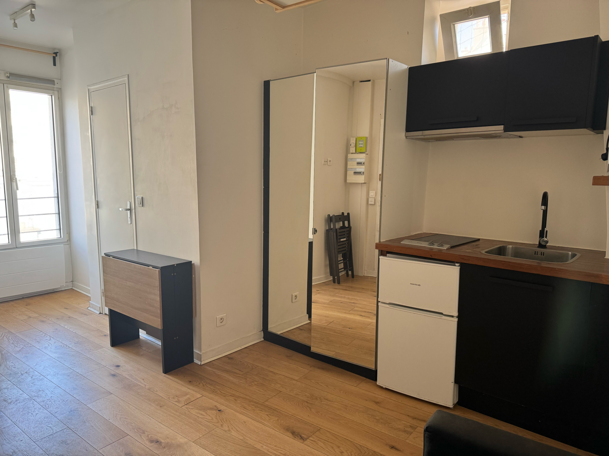 proche canal SAINT MARTIN dans un immeuble ancien beau studio tés lumineux en parfait état, entierement rénové au 5 eme étage sur une grande cour dégagée. quartier trés agréable. sejour coin cuisine, salle de douche avec toilette, placards.