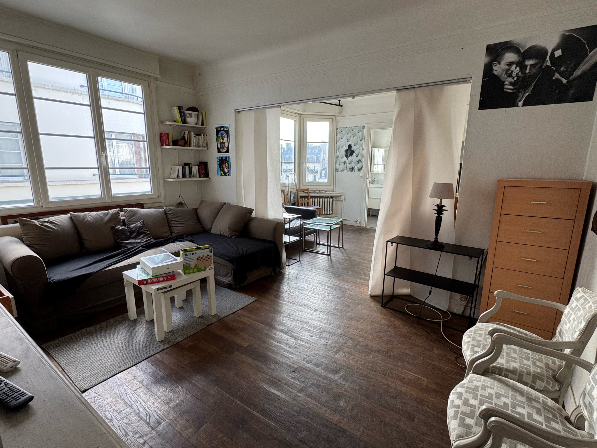 au coeur des BATIGNOLLES dans un BEL IMMEUBLE EN PIERRE DE TAILLE 1930 appartement au 6 EME ETAGE AVEC ASCENSEUR, composé d'une entre, d'un séjour, d'une chambre, d'une cuisine, d'une salle de douche avec toilette. Travaux à prévoir, une cave colmpléte ce bien.